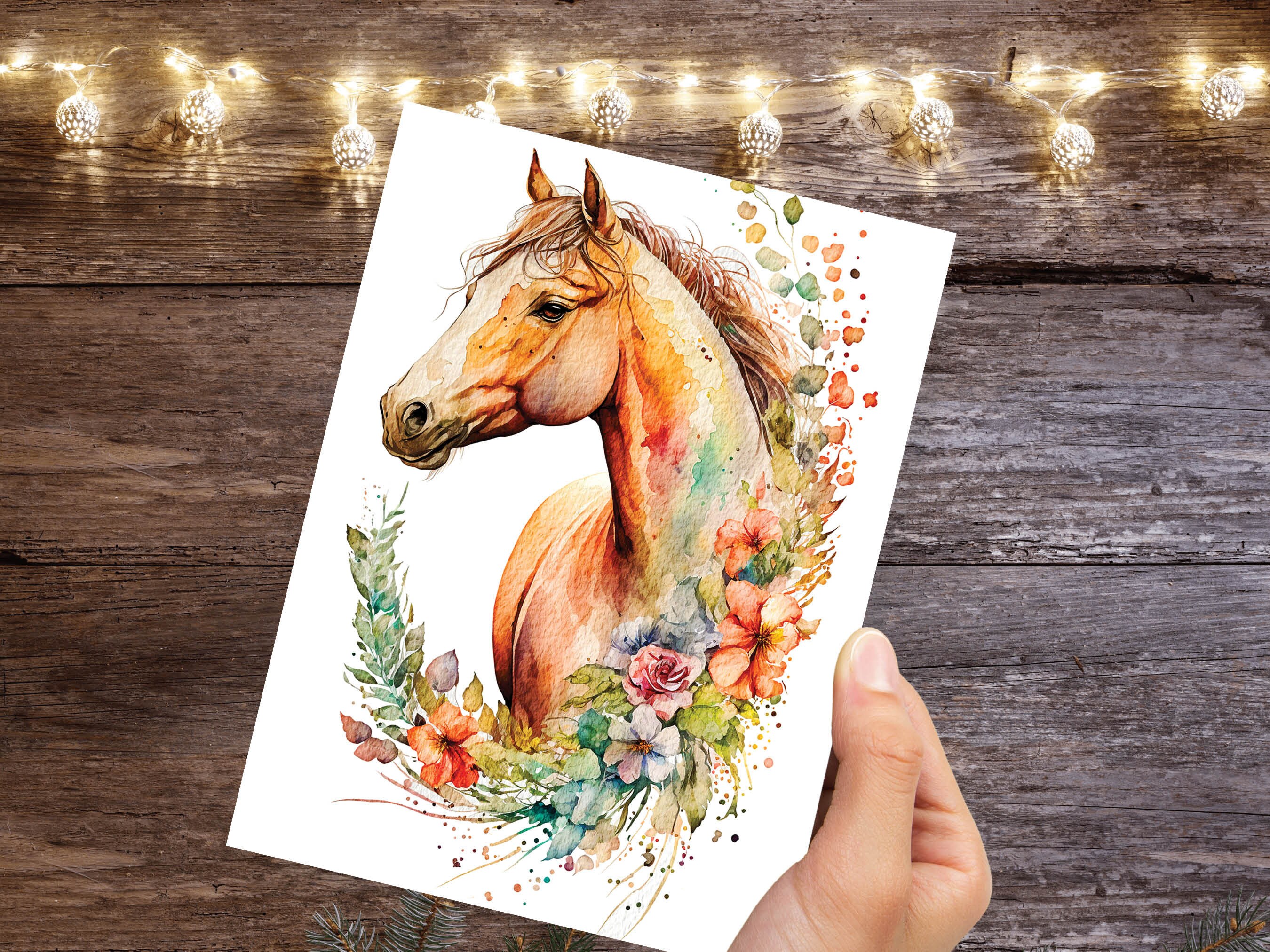 πŸŽ„ 2025 Holiday Shipping Deadlines – to ensure delivery before Christmas, please order by: 10-packs: πŸ‡¬πŸ‡§πŸ‡ΊπŸ‡ΈπŸ‡¨πŸ‡¦πŸ‡¦πŸ‡Ί – 17th Dec | Other countries – 12th Dec (contact us if unsure) Singles & 5-packs: πŸ‡¬πŸ‡§ UK – 17th Dec πŸ‡ΊπŸ‡Έ US – 10th Dec πŸ‡¨πŸ‡¦ Canada & 🌍 Rest of World – 2nd Dec ✨ Good news for US customers: We ship via carriers that won't incur US tariff charges! 🌳 Every Order Plants A Tree! 🌳 This beautiful greeting card with its gorgeous watercolour painting of a horse surrounded by flowers is the perfect way to show someone you're thinking of them. The vivid colours and delicate details of the painting will capture their attention and lift their spirits. Not only that, but the blank interior allows you to add your own personal message, creating a special greeting for them. Watercolour_Horse_With_Flowers_Painting_2