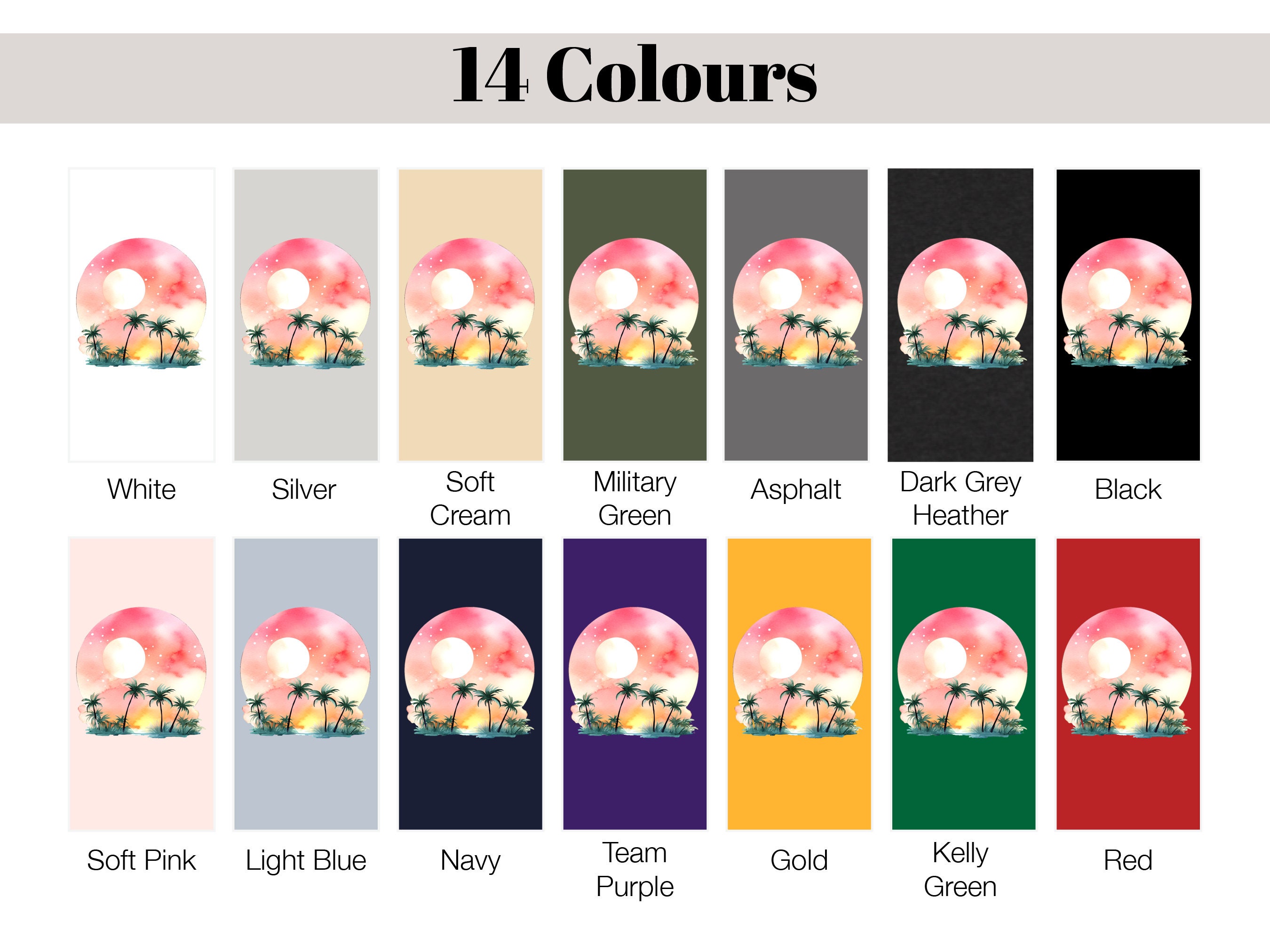 This enchanting Watercolour Dream Tropical Sunset T-Shirt showcases a charming watercolour-style design featuring a cute tropical sunset in captivating shades of pink, orange, and yellow. The shirt's vivid and picturesque design symbolises warmth, tranquility, and the beauty of nature, making it a perfect gift for beach lovers, travellers, and anyone who appreciates the allure of a breathtaking sunset. Embrace the serenity of the tropics with this stylish and comfortable tee, ideal for casual outings or as a statement piece to add to your wardrobe.